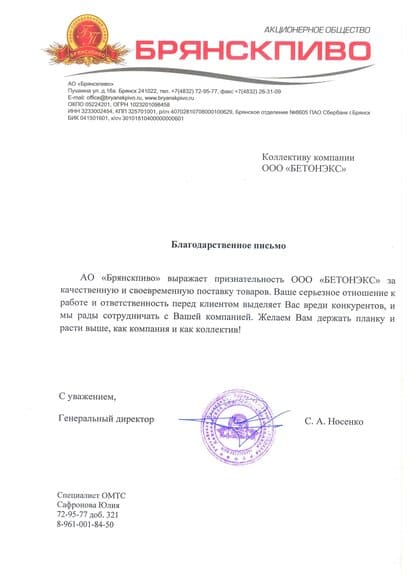 Компания «Эксон-Евробетон» предлагает к реализации качественный товарный бетон в Брянске с доставкой. Консультация по телефону +7 (4832) 33-60-60